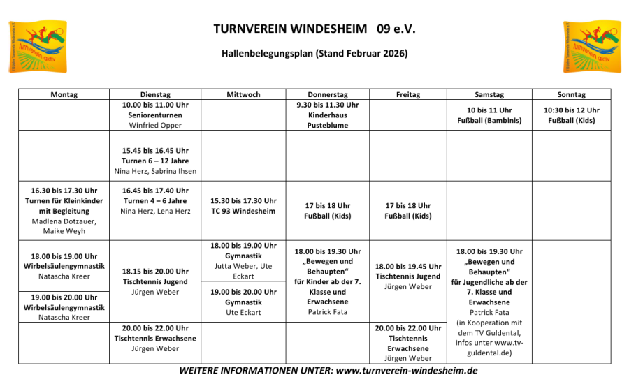 Hallenbelegungsplan (Stand 02/2026)